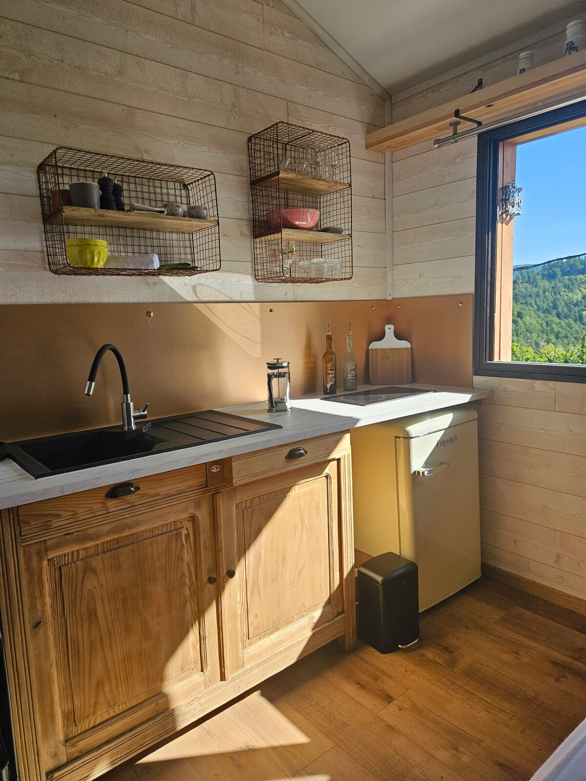 Deschide ușa căsuței pentru un weekend sau o săptămână. O pauză în inima unei grădini ornamentale. Într-un cadru verde, veți fi singuri în mijlocul naturii liniștite, lăsând timpul să treacă în timp ce vă bucurați de peisajul care se schimbă odată cu anotimpurile... Suntem conștienți de impactul nostru asupra mediului și ne angajăm să conservăm locul: fără acces Wi-Fi, dar rețeaua 4G vă va conecta la lumea exterioară; toalete cu compost atașate... O mică grădină împrejmuită pentru câinii dvs.