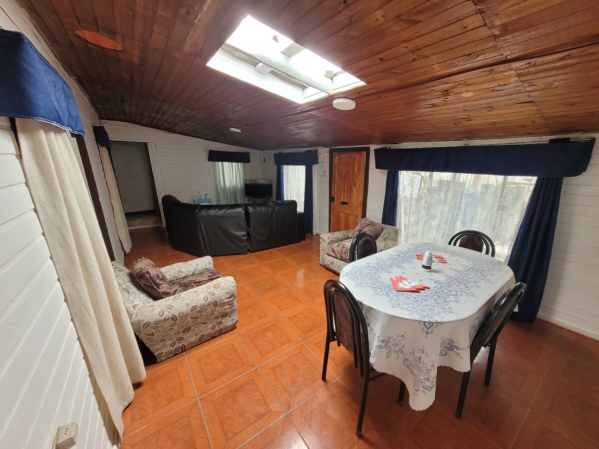 Bună! Numele meu este jairo, iar casa este ideală pentru familiile și tinerii care doresc să își petreacă vacanța în Constitución, este formată din 4 paturi de 1,5 locuri, 2 dormitoare și are o locație excelentă, deoarece se află la doar câteva minute de piața, plaja și râul comunei. Are TV prin cablu, Wi-Fi și parcare pentru vehicul. Loc liniștit și sigur pentru turiști, bucătăria este complet echipată pentru 4 persoane. Casa se află în interiorul proprietății, dar are intrare separată