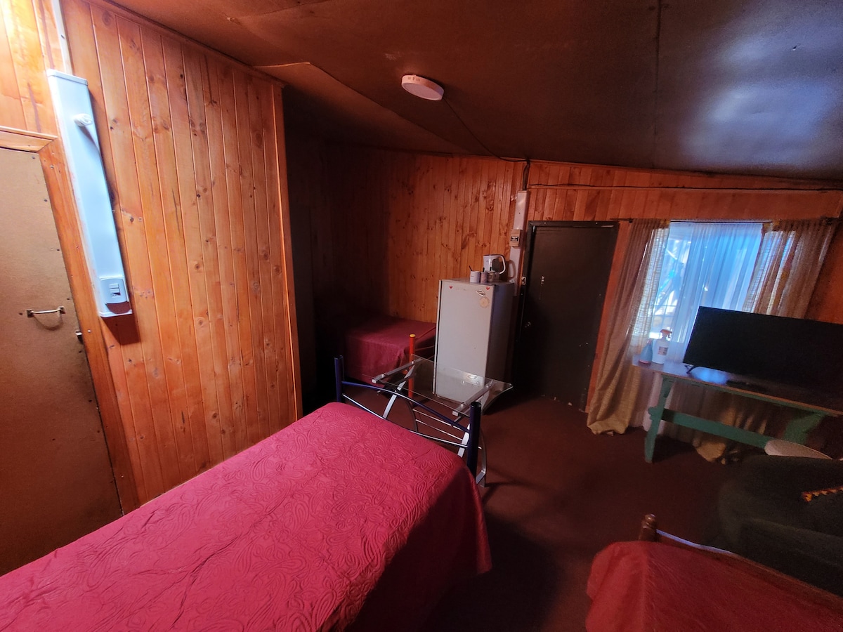 Mini cabaña en barrio residencial y tranquilo en Constitución. Ambiente familiar ideal para descanso, cercano terminal de buses y ferrocarriles, hospital y supermercados. A 10 minutos en auto de las principales playas de la ciudad y a pasos del río Maule. Adicionalmente contamos con lavandería, quincho y piscina compartidos (consulte disponibilidad). Importante, al momento de reservar indicar la cantidad de personas total para disposición de 1 o 2 camas. (Cama matrimonial + cama individual)