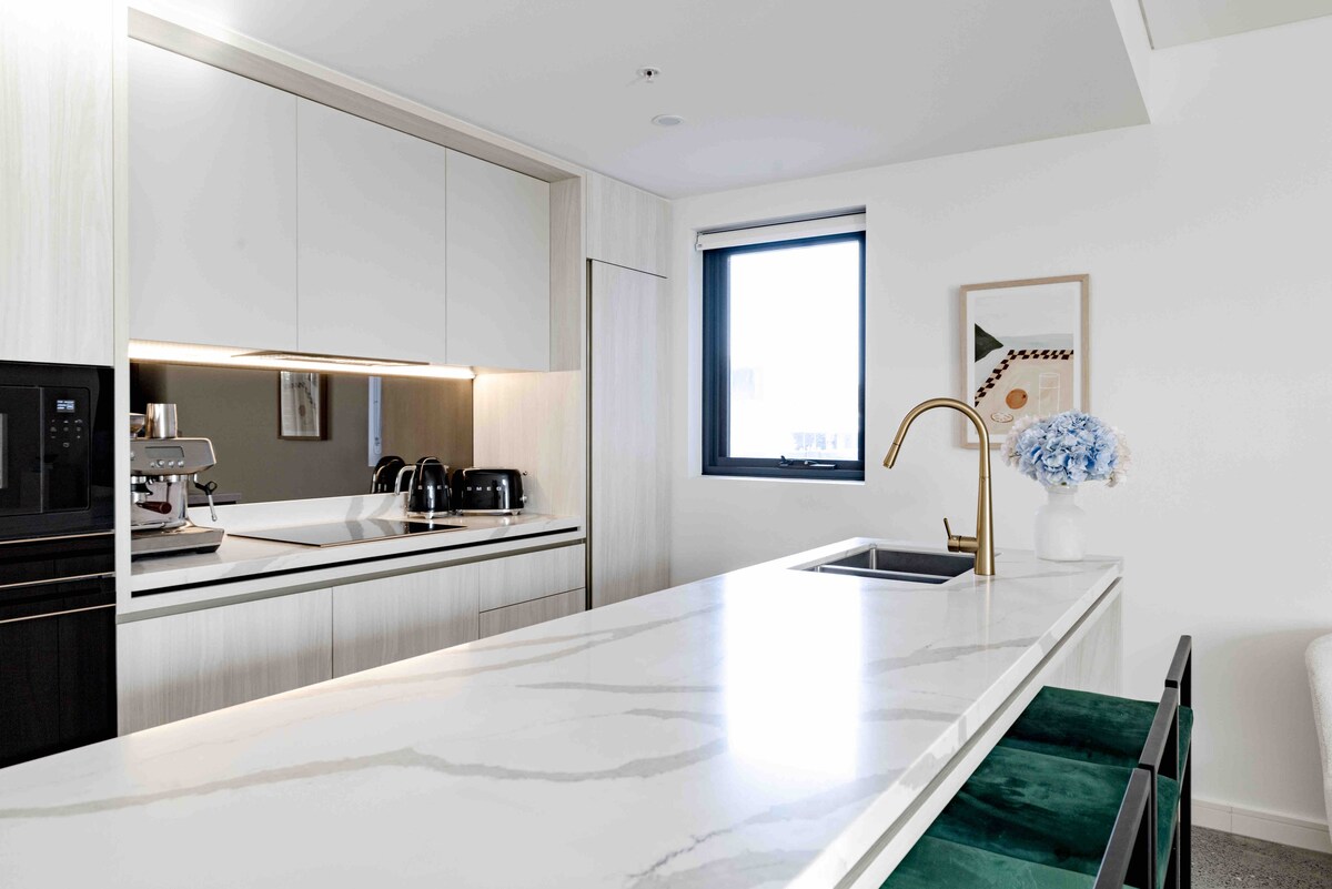 Quest Newcastle offers an accommodation experience perfect for short or long stays. Quest Newcastle has been fully refurbed in 2018, with a modern coastal decor and is located in the heart of Newcastle's CBD. Within a short walk to the waterfront boardwalk of Honeysuckle and Marketown Shopping Centre, everything is at your doorstep. Our One Bedroom Apartments are ideal for families, corporates looking for a home away from home experience, complete with full kitchens and laundry facilities.