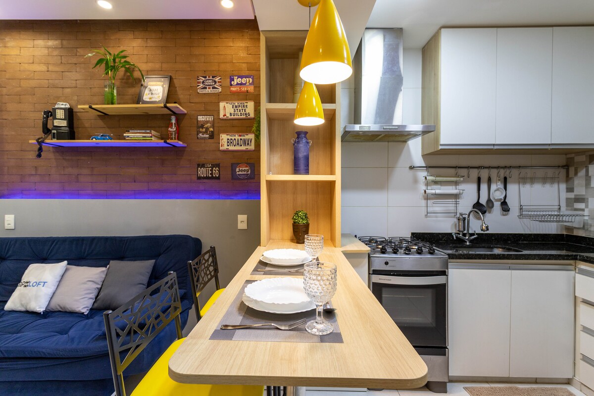 Apartament inspirat de conceptul de tip boutique Loft. Modern, funcțional și confortabil, situat lângă metrou și plaja Copacabana. Apartament cu aer condiționat separat de 18.000 BTU, 2 ventilatoare de tavan, Smart TV de 32", Wi-Fi de mare viteză, lenjerie de pat și de baie, bucătărie completă cu aragaz, frigider, cuptor cu microunde, oale și tigăi și toate ustensilele. Check-in: după ora 14:00. Check-out: până la 11 Check-in independent prin blocare electronică.