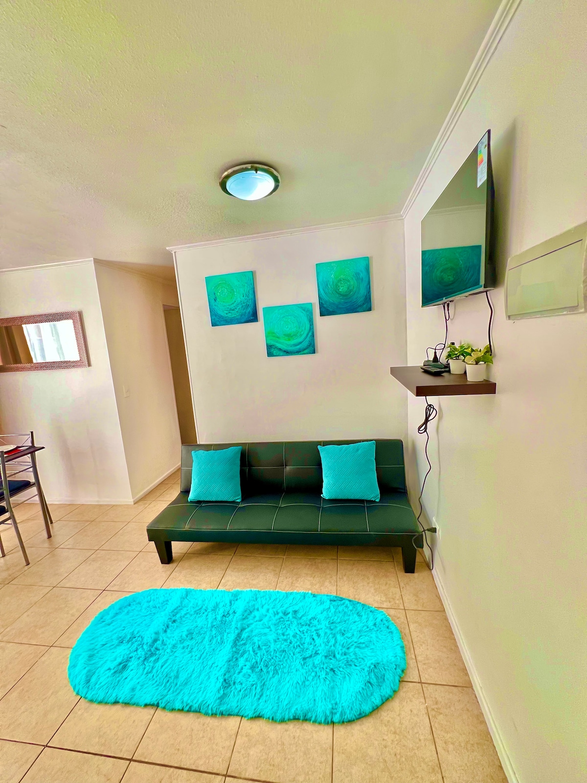 Apartament complet și confortabil situat în sectorul central al orașului Copiapó, la doar 5 minute de mers pe jos de centrul orașului, ideal pentru călătorii de afaceri, șederi lungi sau odihnă. Are 2 dormitoare (pat dublu și pat supraetajat), 1 baie, living luminos și vedere la oraș. Complet echipat cu o bucătărie completă, Wi-Fi rapid, TV prin cablu, mașină de spălat și uscător, plus parcare subterană inclusă. Conectivitate excelentă și servicii în apropiere, susținute de Disegni Rental.