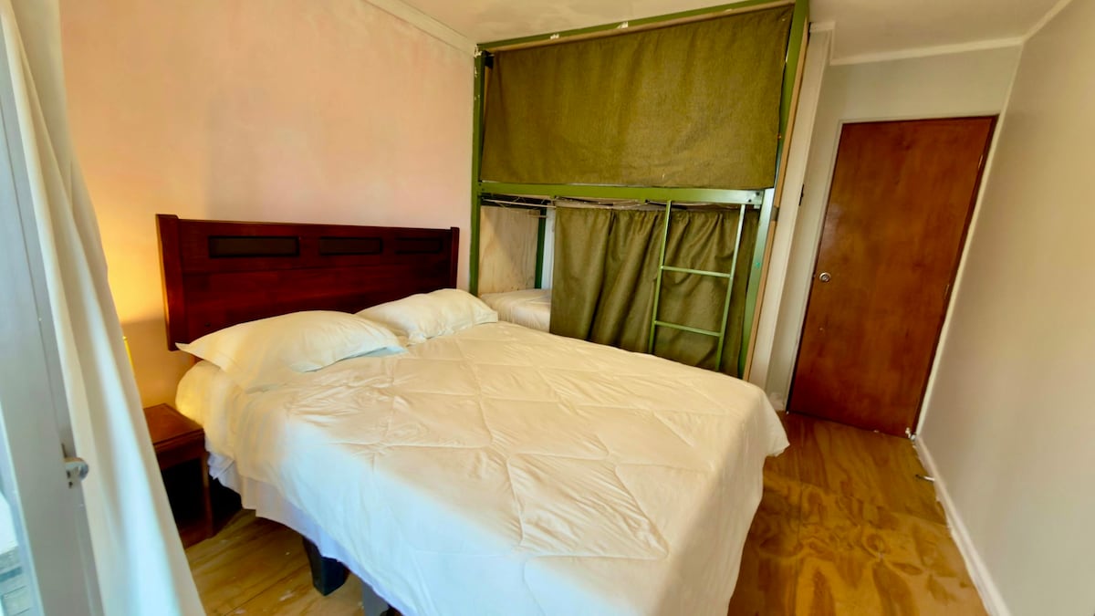 Habitación para 4 huéspedes con 1 cama matrimonial y 1 cápsula/camarote, con cocina y baños compartidos solo para adultos. Ubicada en el tercer piso. Ideal para grupos que buscan una opción cómoda y práctica cerca de la playa en Coquimbo y del entretenimiento de La Serena. Con salida a la terraza y vistas a la playa, acceso a los restaurantes de Casa Magnolia, disfrutarás de una experiencia única. Además, la playa está a solo unos pasos, y la piscina está lista para que te refresques.