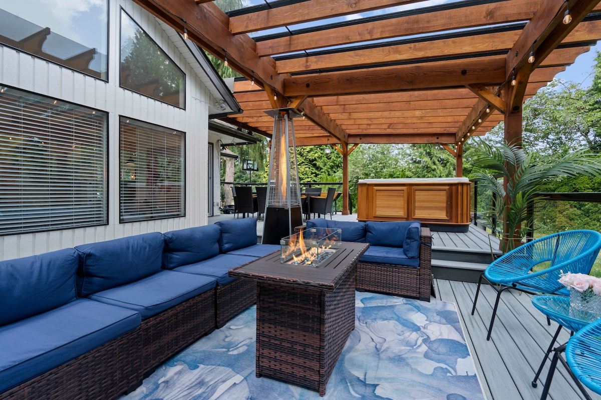 Experimentează vacanța perfectă în acest refugiu de pe litoral. Bucură-te de apusuri de soare uimitoare din cada cu hidromasaj sau de terasa privată acoperită de 700 mp. Ideal pentru o escapadă romantică, conexiune cu natura sau R&R. În apropiere, răsfață-te cu drumeții frumoase, plimbă-te până la Brewer's Row și găsește magazine alimentare la 5 minute cu mașina. Vancouver este la doar 45 de minute de mers cu trenul Skytrain sau cu mașina. Golf, tenis, drumeții și atracții locale, cum ar fi colonia Great Blue Heron, Buntzen Lake și Rocky Point Park, sunt toate la îndemână.