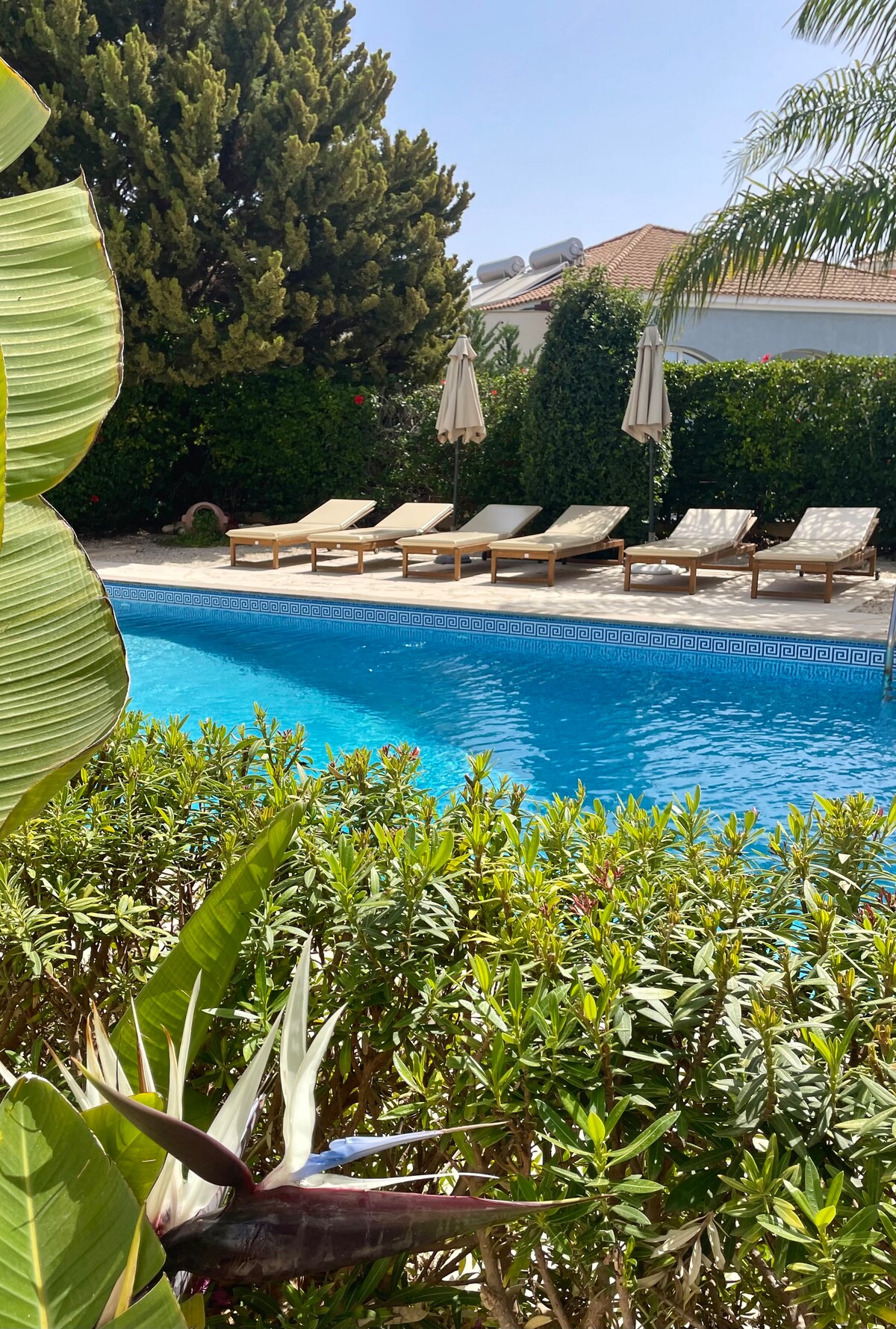 Reg. Number: AEMAK-PAF 0001032 Villa is near the beaches Coral Bay and Coralia in 2 minutes drive or 10 minutes walk, has private location, large swimming pool . Villa is equipped with all modern appliances and air conditioners. The restaurants, sport bars, supermarket are nearby. WiFi, Smart TV. Netflix available. !!! The electricity is over 25 kw per night is extra charged by meter. Swimming pool Is heated by request with a deposit approx. 10-30 euros per day depending on season.