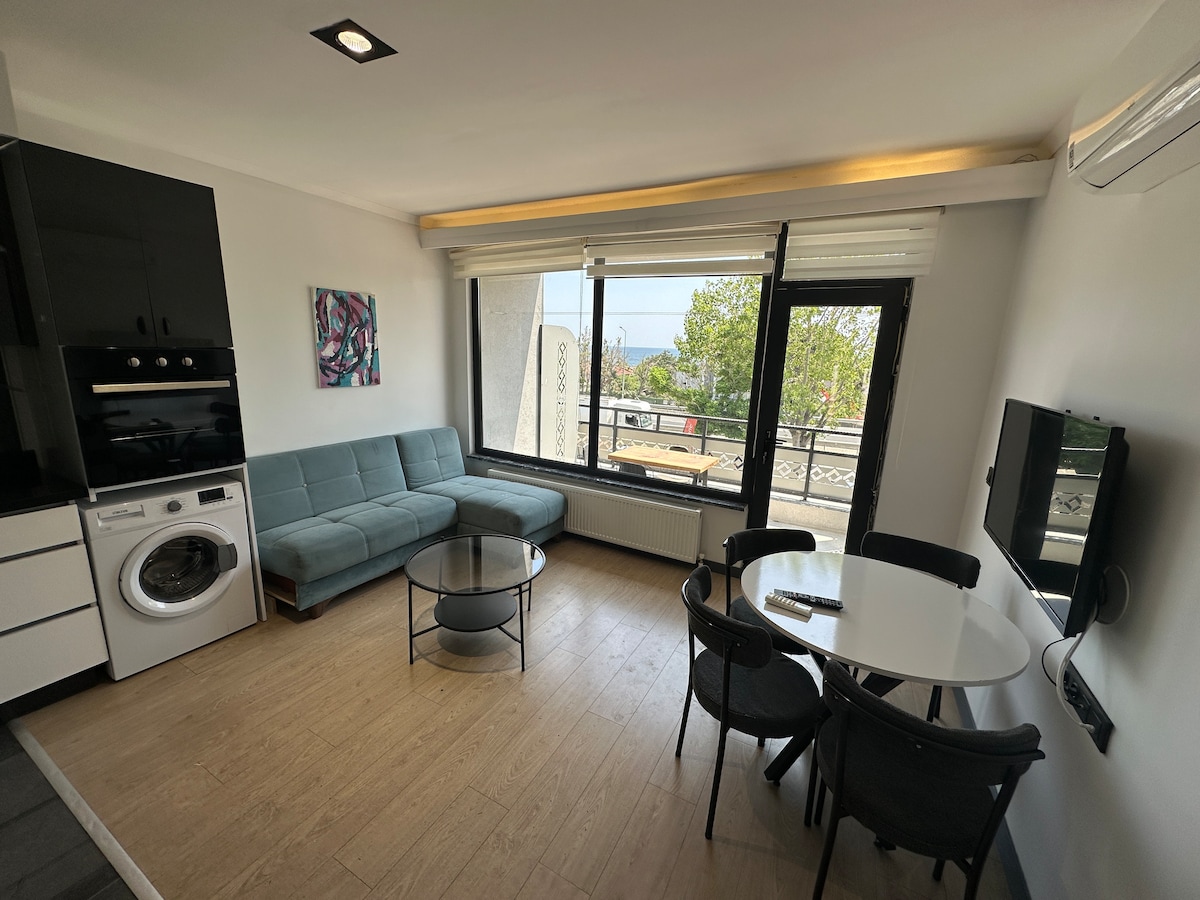 Distanță de mers pe jos până la magazine alimentare și plajă. Stația de transport public este chiar în fața ei.Smart TV, aer condiționat, mașină de spălat rufe, mașină de spălat vase, frigider, cuptor, aragaz, hotă, cafetieră turcească, aparat Nescafe, dulap, canapea extensibilă pentru 2 persoane. Casă din oțel cu fotoliu, masă, parcare în aer liber, intrare separată, un etaj, balcon tip vilă. Este doar pentru 2 oaspeți. Nu sunt permiși mai mult de 2 oaspeți. La check-in, se ia actul de identitate al persoanei care face rezervarea