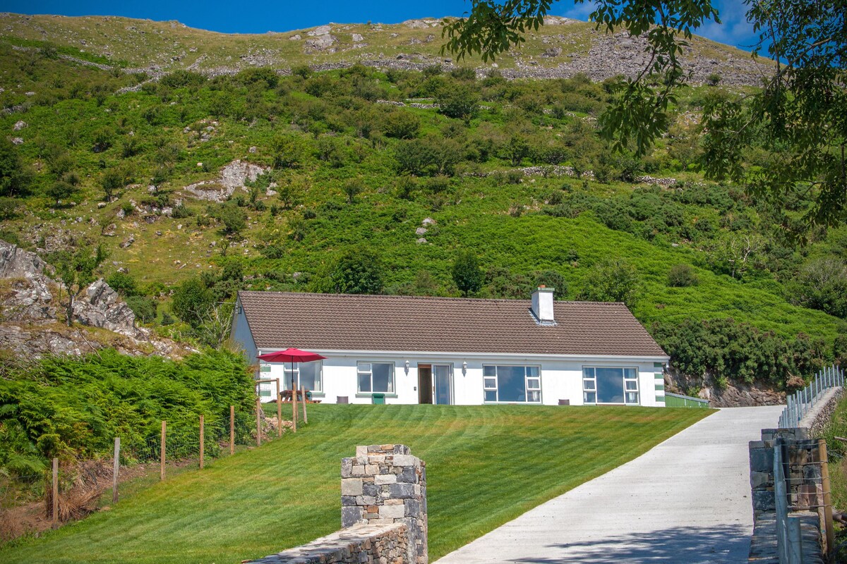 Amplasată între dealurile și lacurile din Connemara, această cabană minunată de piatră este înconjurată de grădini naturale și flori sălbatice, colorate. Există nesfârșite plimbări și alpinism cu Parcul Național Connemara la ușă. Casa se află de-a lungul Căii Atlanticului Sălbatic, la mică distanță de mers cu mașina de plajele frumoase de la Letterfrack și Renvyle. Kylemore Abbey și Gardens sunt chiar peste lac în afara ușii, care este potrivit pentru pescuit cu închiriere de bărci, de asemenea, disponibile