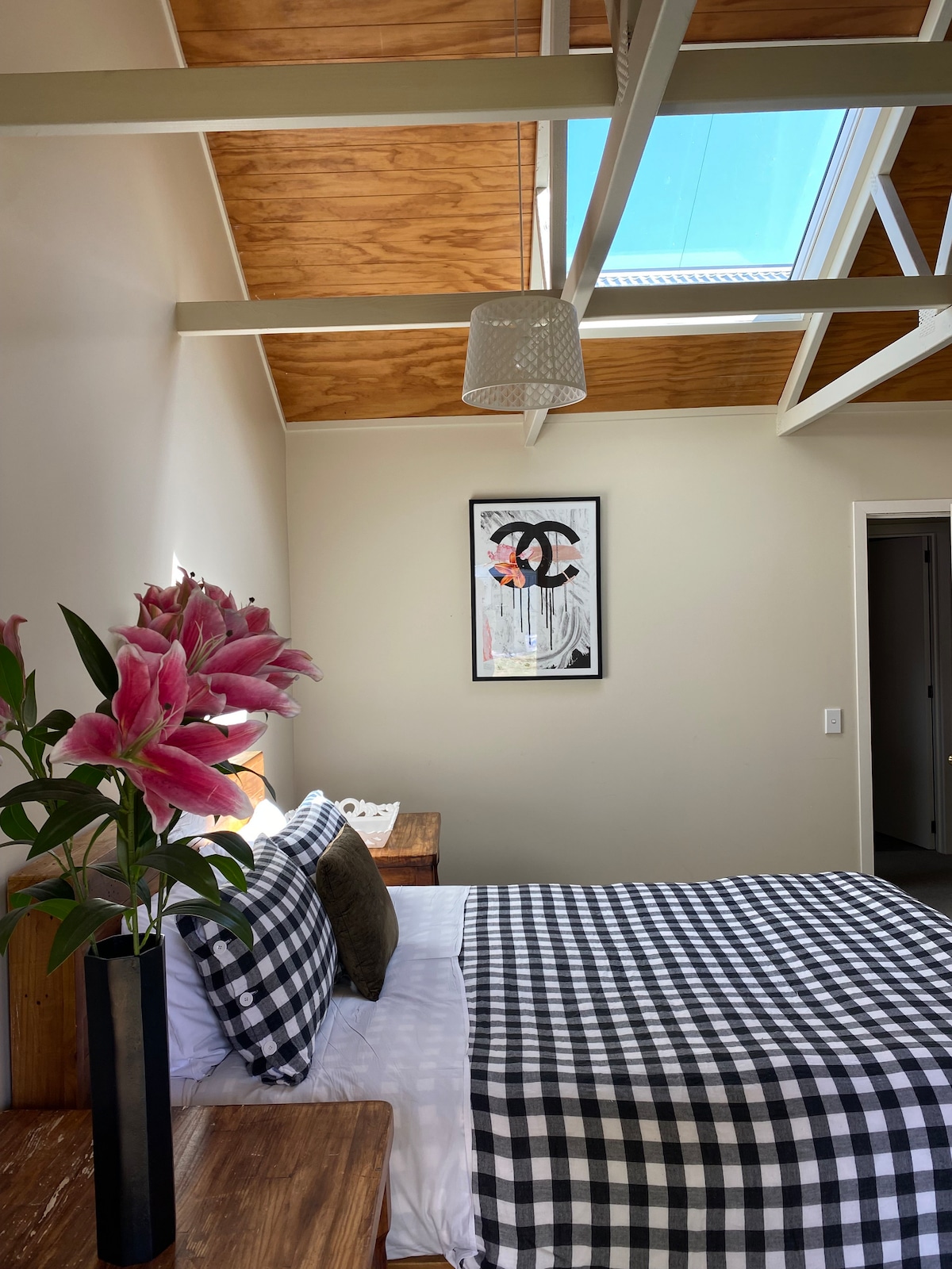 Overlooking the picturesque views of the Crown Range sits Birdwoods Cottage.This self-contained cottage has 1 private Bedroom, Bathroom, Lounge, Kitchenette and Laundry. The space has beautiful natural light and soft warm tones with windows taking advantage of the rural views throughout the cottage. This cottage will make you feel like you have been transported to Africa with the exquisite artwork and sculptures around the cottage and property making this a unique holiday home experience.