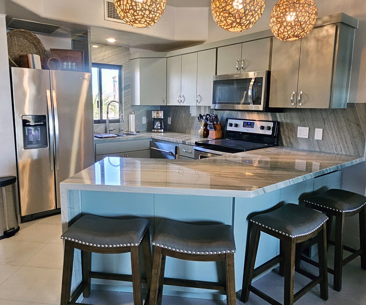 This condo is the place to be for your Cabo Vacation! Escape to the panoramic ocean views & breezes of this recently remodeled and private condo at Terrasol. The condo has everything you need to relax, sit back, enjoy a margarita, and create great memories on your next Cabo vacation. This unit has two king size beds, a queen size air mattress and a large couch.