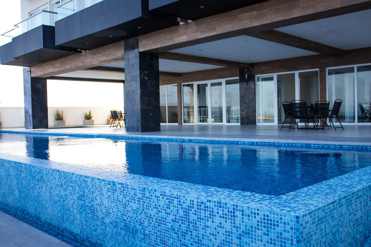 Amplio departamento frente al mar|Alberca familiar