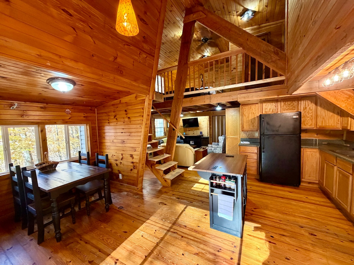 Enjoy tranquil views while drinking your morning coffee or evening glass of wine on the expansive front porch of our cozy 840 SF cabin. This 2 bedroom, 2 bathroom home features a covered front porch and large side deck with outdoor dining and fire pit. The cabin sits on over 1.5 acres so there is plenty of space to enjoy private time in nature. Located 12 minutes from Maggie Valley, 20 minutes from downtown Waynesville, and 30 minutes from Asheville and Cataloochee Valley.