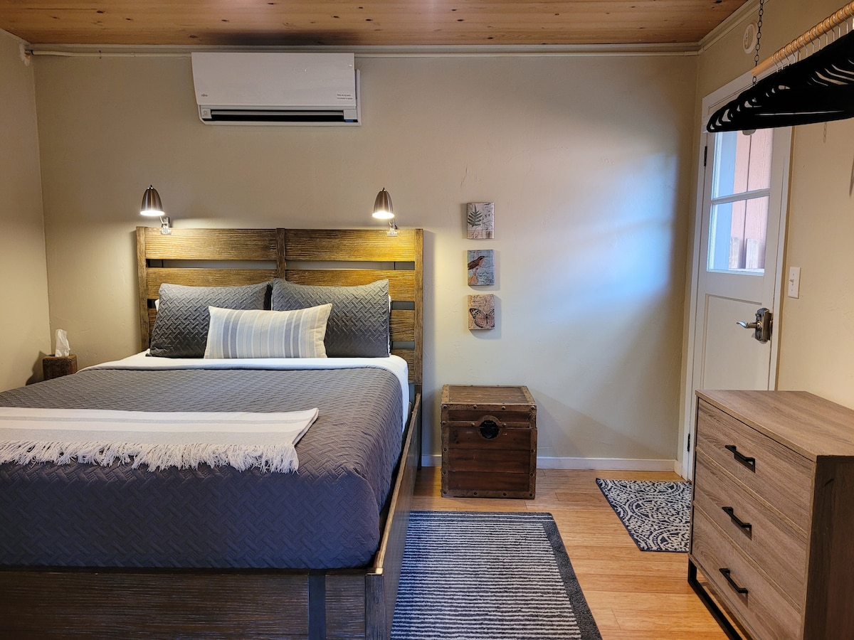 Fermecător 250 mp ft. South Eugene bungalow oaspete loft cu intrare exterioară privată (10 trepte în sus), ideal pentru 1 oaspete. Baie privată completă cu chiuvetă, toaletă și duș.* Pat matrimonial matrimonial cu saltea confortabilă cu spumă de memorie, husă de bambus, lenjerie de pat de calitate. *Deși înălțimea tavanului băii este de 7’6” la cel mai înalt nivel, te rugăm să reții că tavanele înclinate din duș pot oferi un spațiu pentru cap mai puțin decât interior pentru oaspeții din partea înaltă. Capul de duș este detașabil/portabil pentru un plus de confort.