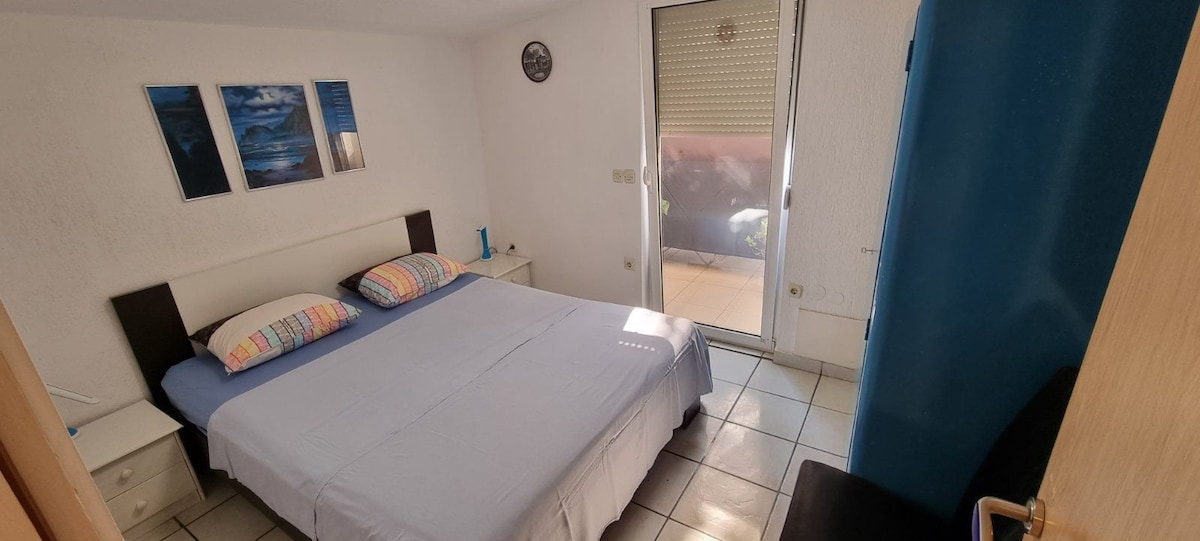 Acest apartament modern și frumos decorat este situat la etajul al doilea al unei case de familie. Apartamentul de 50 m2 poate găzdui 4 până la 5 persoane și constă dintr-o bucătărie și un living, două dormitoare cu paturi duble, o baie cu duș și un balcon. Printre facilitățile suplimentare ale acestui apartament se numără aer condiționat, WiFi, SAT TV, grătar comun și loc de parcare în curte. Animalele de companie nu sunt permise.
