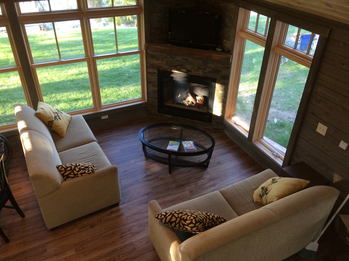 Amplasat pe liniștitul Grass Lake, te așteaptă un refugiu confortabil în cabană! Indiferent dacă te bucuri de jocuri în curte, de focul de tabără sau de îmbrățișarea confortabilă a sobei cu lemne, acest spațiu este conceput cu grijă pentru următoarea ta escapadă de familie sau pentru o evadare solo liniștită. Bucură-te de priveliștile uluitoare de pe malul lacului de pe doc, punte sau camera de patru sezoane. Cufundă-te într-un spațiu proiectat să încurajeze conexiunile și să stârnească creativitatea. Te invităm să ni te alături și să îți creezi propriile amintiri frumoase la cabană.