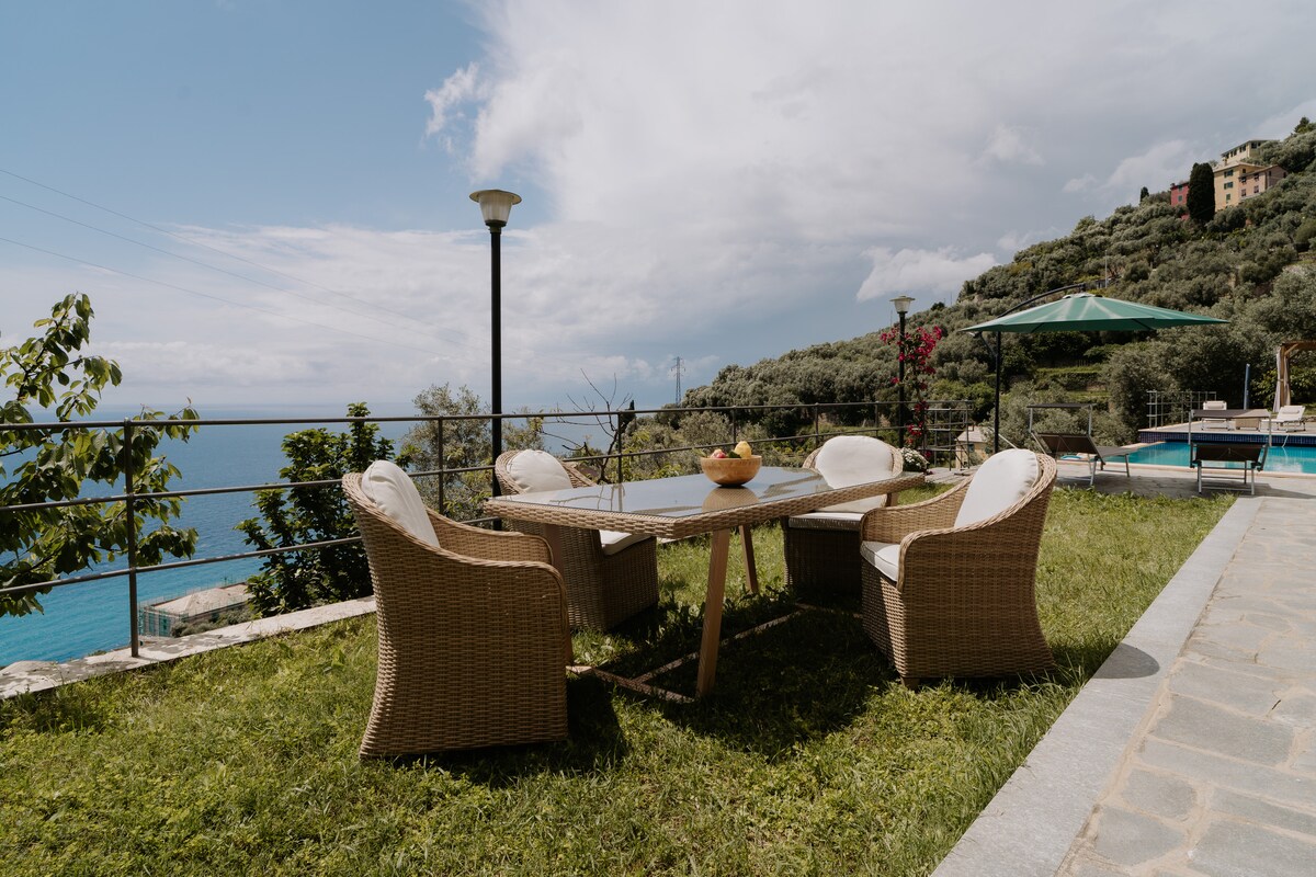 Penthouse elegant și spațios în vila istorică de pe mare și cu acces direct la mare, parcare privată gratuită și o terasă frumoasă cu vedere la 360 de grade, cu grătar și solar, pentru utilizare exclusivă. Aer condiționat. Soluție unică și unică. La 5 minute de mers pe jos de gară (legături spre Cinque Terre, Santa Margherita/Portofino, Camogli și Genova). 2 locuri de parcare în grădină: confort prețios în Liguria! Acces direct la mare pe o stâncă privată. Restaurante și magazine la câțiva pași.