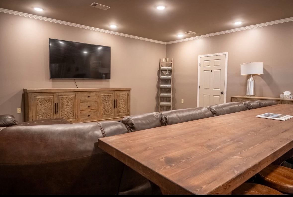 Perfect venue for family gatherings! With nearly 3500 sq ft of space, theres more than enough room for your large group. Our expansive entertainment area features 12-foot tall ceilings, a 100-inch projector, a 65-inch smart tv, and 12 reclining couches to relax in. Challenge friends to a game of pool, or unwind by the built-in electric fireplace. With 3 bedrooms and 3 bathrooms, (2 with jacuzzi tubs), and a total of 14 beds, there's ample room for relaxation and rejuvenation!
