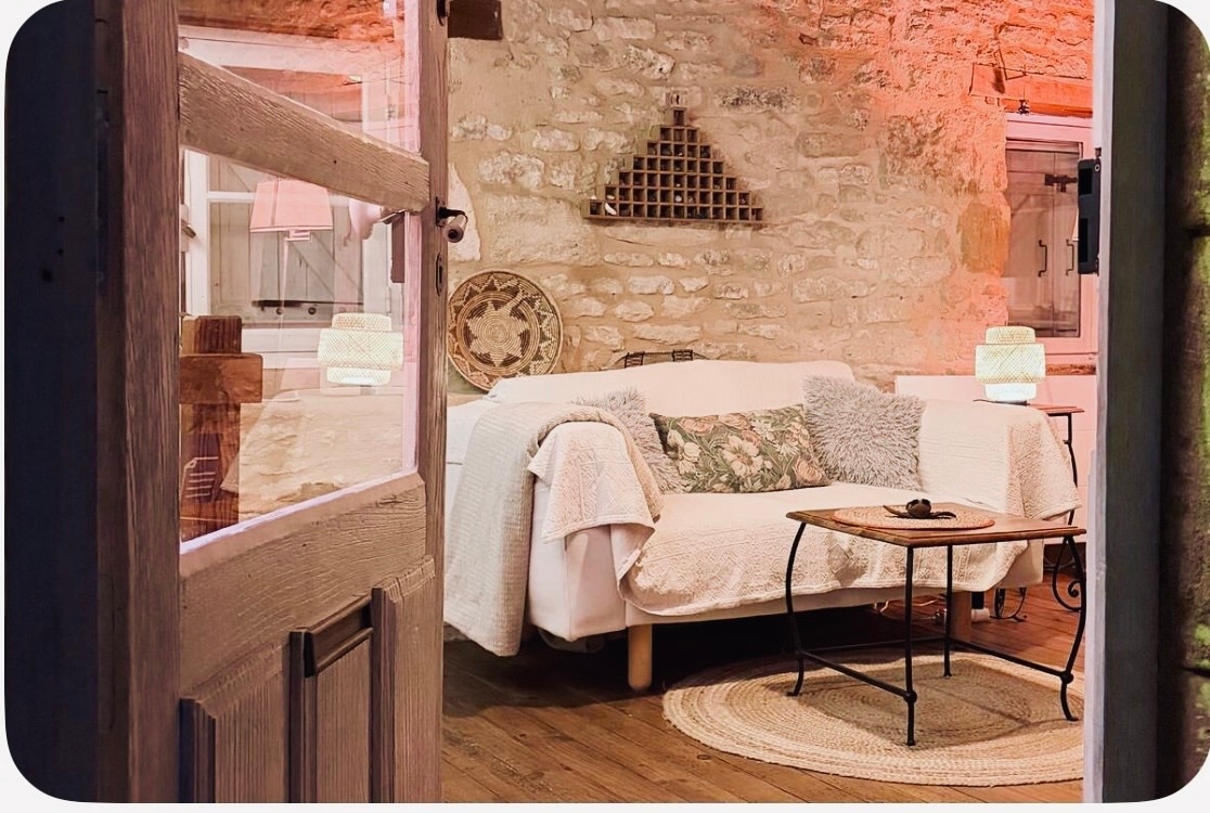 Situé au coeur du centre historique de Sarlat dans la célèbre rue Montaigne, dans une maison datant du Moyen Âge rénovée en 2020 en valorisant au maximum son patrimoine (pierre, parquets), l'appartement de 64 m2 propose une terrasse et une vue exceptionnelle sur la Cathédrale St Sacerdos et les jardins des Enfeux. A noter : pour les groupes ou les grandes familles, il est également possible de louer la maison entière, jusqu'à 14 personnes ("La Demeure de Bacchus", annonce Airbnb n°51800236).