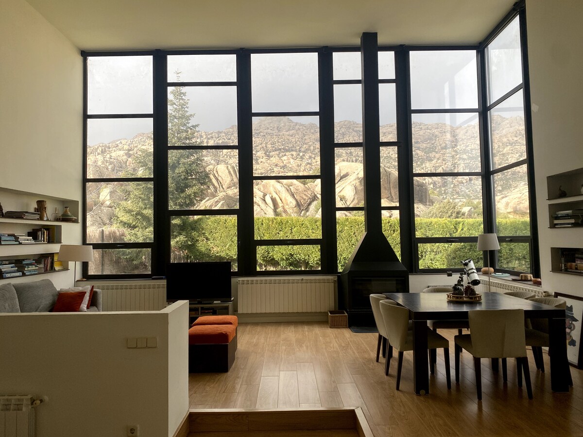 Casă rustică foarte confortabilă, situată în inima „Sierra de la Pedriza”, care aparține parcului regional Guadarrama și la doar o jumătate de oră de Madrid. Terenul acestei case are o suprafață de 3000 de metri pătrați cu vegetație naturală în zonă. La 5 minute de mers pe jos vei găsi frumosul oraș „El Boalo”. Priveliști impresionante ale Sierra de Madrid. Posibilitatea de excursii frumoase, călărie și mai multe activități.