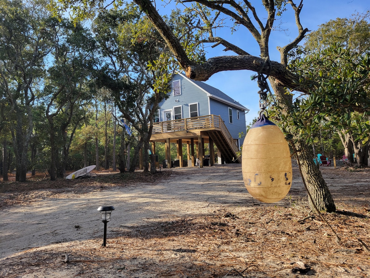 Cabană Soundfront lângă OBX • Doc, caiace, vatră de foc