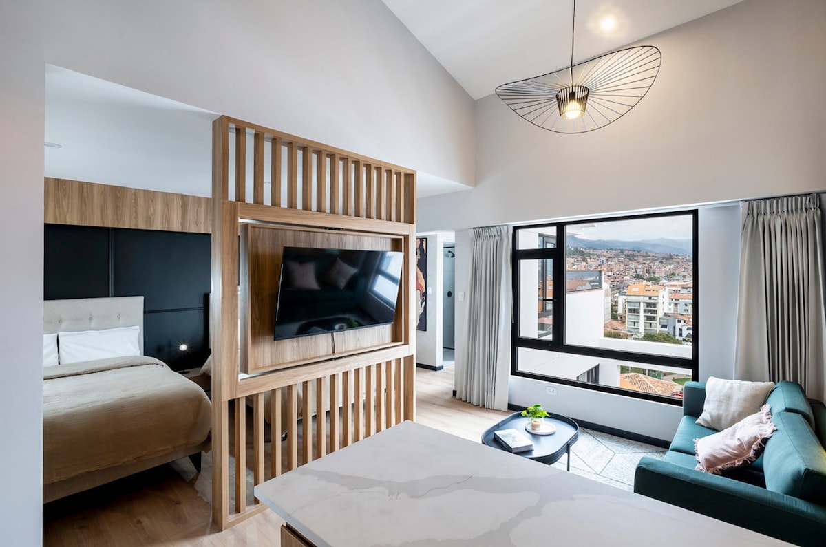 Trezește-te cu priveliști panoramice asupra orașului Cusco scăldat în lumina dimineții. Acest duplex luminos, cu design avangardist, îmbină căldura naturală cu confortul modern, unde ferestrele mari și spațiile deschise încadrează orizontul orașului. Construită pe un teren sacru incaș, unde a locuit cândva dinastia Inca Manco Cápac, se află la doar 10 minute de mers pe jos de Sacsayhuamán și Plaza de Plaza de Armas, aproape de pulsul orașului, dar perfect liniștită pentru dimineți lente și apusuri de soare aurii. Reciclăm și compostăm, onorând spiritul acestui loc.