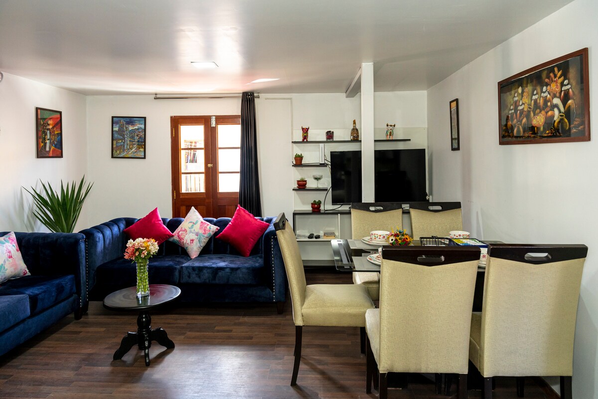 Bucură-te de magia autentică a Cusco din apartamentul nostru confortabil Airbnb! Situat la doar câteva străzi distanță de centrul istoric al orașului, vei fi cufundat în bogăția culturală a acestui oraș antic, bucurându-te în același timp de un confort de neegalat. Cu un design modern și funcțional, apartamentul nostru te va întâmpina ca pe casa ta departe de casă. Odihnește-te liniștit în dormitoarele noastre spațioase cu lenjerie de calitate și trezire revigorată pentru a explora fiecare colț al acestui oraș fascinant.