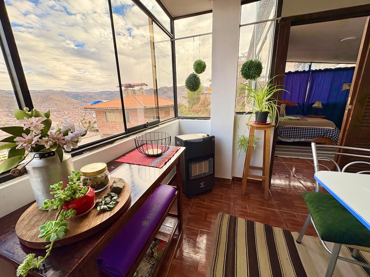 Cute Apartment with a beautiful view of Cusco. Located in the traditional neighborhood of San Blas,it's an ideal spot for couple-family. Righ here family-friendly activities, nightlife, interesting museums,lovely churches.We're just 10 min from the main square. You’ll love our space due to location, the comfy bed, the coziness,amazing view,home feeling.We can offer you AIRPORT PICKUP & TRANSFER,besides we also count with a reliable TRAVEL AGENCY with professional staff