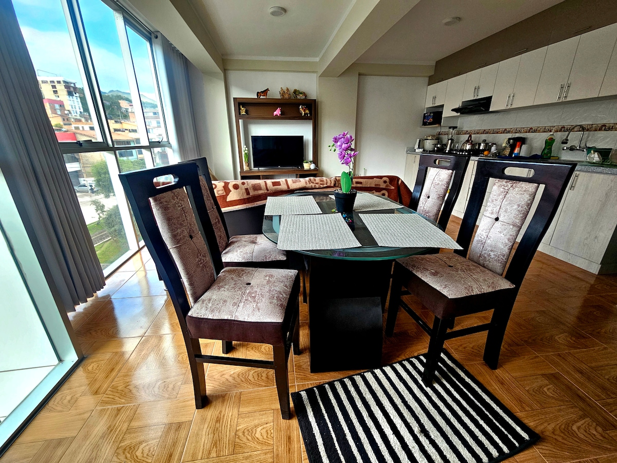 Apartament spațios, modern, complet mobilat în Santa Mónica, una dintre cele mai sigure și mai exclusive zone din Cusco. Situat vizavi de mall-ul de pe Avenida de la Cultura, cu restaurante, bănci, parcuri și transport ușor. La doar 10–15 minute de centrul istoric. Dispune de 3 dormitoare, 2 băi cu dușuri în stil spaniol și hidromasaj, bucătărie utilată, zonă de spălătorie, balcon cu vedere la parc, lift, WiFi, TV prin cablu și este potrivit pentru animale de companie.