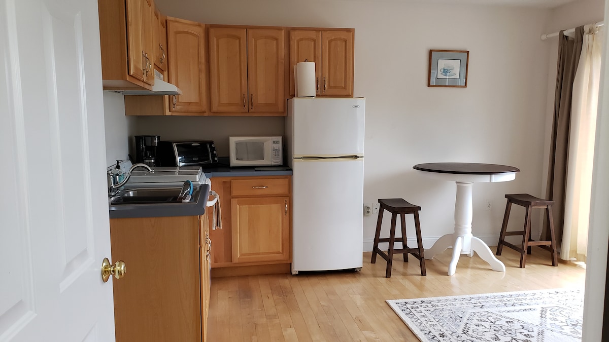 Cabană privată uluitoare pe malul oceanului. Scara cu balamale până la mansarda de dormit de la etajul al doilea. Ușile franceze se deschid pentru a înfășura terasa și gazonul care se înclină spre ocean. 180 de grade de vedere. Locul perfect pentru relaxare sau pentru a avea un foc de tabără seara. Bucură-te de ceaiul sau cafeaua de dimineață privind homarii și bărcile cu pânze sau caiacul explorează și rătăcesc.