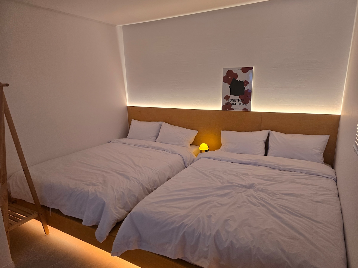 Homestead Stay este o unitate de cazare Daegu Gamsung care a fost deschisă recent în 2025 și poate fi odihnită în liniște în apropierea stației Dongdaegu. Stația Dongdaegu, aeroportul Daegu și Dongseong-ro sunt toate ușor accesibile, astfel încât să poți merge oriunde, dar zona din jurul cazării este liniștită, astfel încât să te poți bucura de o odihnă confortabilă chiar și în oraș. Toate camerele sunt dotate cu încălzire cu boiler în pardoseală, astfel încât să poți sta într-o cameră caldă chiar și în timpul iernii și să poți folosi apa caldă confortabil. În plus, am pregătit o baie privată în stil hotelier și lenjerie de pat în toate camerele, astfel încât să fie mai confortabil de utilizat, păstrând în același timp interiorul emoțional. De asemenea, avem toate articolele de bază de care ai nevoie pentru călătoria ta, inclusiv un televizor mare de 65 inch, frigider, uscător, fier de călcat și dotări. Este la fel de confortabil ca acasă, dar se simte la fel de ordonat ca un hotel. Aceasta este atmosfera pe care o urmărește șederea la fermă. M-am asigurat că timpul pe care îl petreci aici se simte mai liniștit și mai stabil, astfel încât să poți sta confortabil cu familia, iubiții și prietenii. De ce nu vizitezi Homestead cu cei dragi în ziua ta prețioasă?