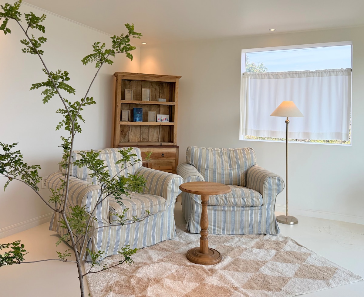 Ascuns sub maiestuosul munte Hallasan, Stay NangNang oferă un refugiu liniștit înconjurat de natură. Bucură-te de priveliști uimitoare ale unei livezi de mandarine și ale căilor mărginite de flori de cireș, cu o pădure de bambus calmantă ca fundal. Trezește-te cu foșnetul blând al frunzelor de bambus și cântecele melodice ale păsărilor din Jeju, experimentând farmecul insulei în fiecare sezon. Acest spațiu privat este perfect pentru cei care caută liniște, fie pentru o ședere de o lună, fie pentru o escapadă de familie.