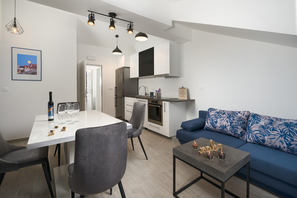 Nave is a new apartment located in a quiet neighbourhood of Ploče. It is 7-10 minutes of walking distance from the Old Town and Banje beach is just down the street. With all amenities inside the apartment we made sure our two guests can have a relaxing stay whether it is by sipping wine on the balcony overlooking the Old Town, Lokrum Island and the sea, or inside the apartment under the AC gazing at the sea.