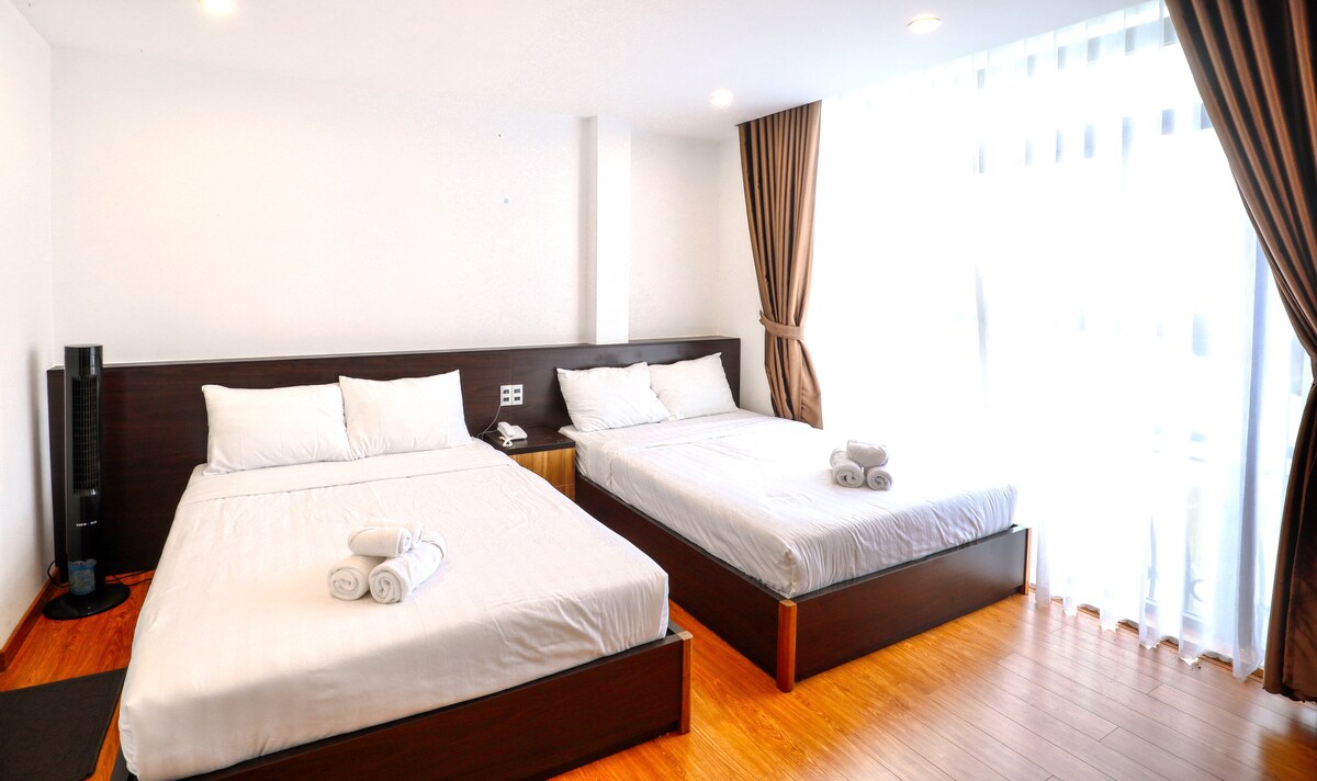 Bine ai venit în camera noastră confortabilă pentru patru persoane, cu două balcoane. Un balcon are vedere la o grădină de flori vibrantă, în timp ce celălalt oferă o privire asupra emblematicului „nhà lաng” din Thai Phien Flower Village. Bucură-te de priveliștile liniștite și de farmecul local în timpul șederii tale!