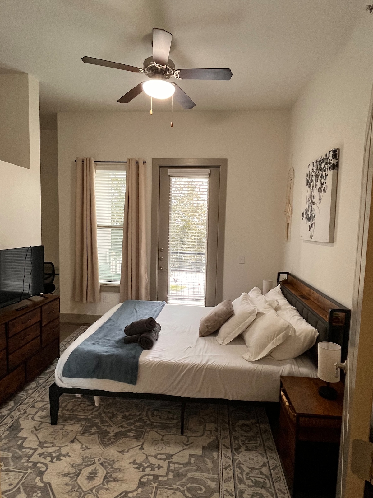 Located in the heart of Central Dallas, this executive 2-bedroom, 1.5-bath furnished condo is ideal for extended stays. Enjoy a full dining area, modern kitchen, and living room that opens to a private patio with serene garden views. One bedroom features a plush king bed, while the other offers a queen bed—with spacious closets and elegant dressers. Guests have exclusive access to an award-winning courtyard equipped with premium wellness products, creating the perfect blend of comfort,