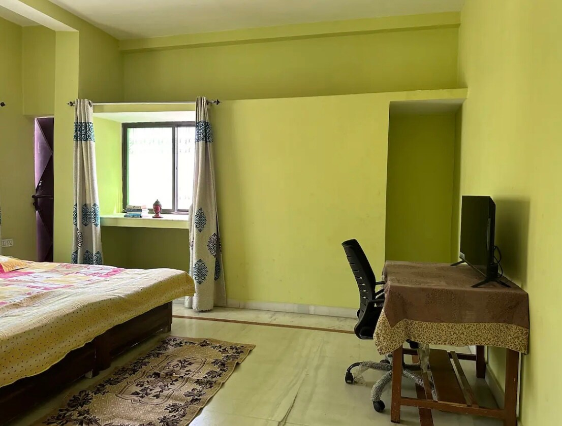 Apartament cu check-in independent. (Fără taxe ascunse) Bicicletă electrică disponibilă. Te rog să mă anunți dacă ai nevoie de ea. Bucură-te de libertatea și intimitatea unei locuințe adevărate, nu de un hotel ! Potrivit pentru cupluri, situat central, (cel mai ieftin preț garantat în PATNA) Ce se află în camera ta? * Smart TV * AC * Masă și scaun de birou * Canapea convertibilă * Bucătărie aprovizionată: vei găsi tot ce ai nevoie pentru a-ți pregăti mesele preferate 3 km - aeroport 3,9 km - Patna Junction 1 km - Inox 3 km - Înalta Curte 1Km-Phulwari
