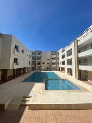 Apartamentul s+2 3 minute de mers pe jos de plajă, decorat pe o temă și culori moderne,confortabil și elegant, oferă un spațiu ideal conceput pentru a combina un moment de petrecere a timpului liber și relaxare , pentru a trăi vacanțele, șederile lungi...în deplină libertate și independență într-unul dintre cele mai frumoase orașe din Capbon Kélibia,într-o reședință păzită și securizată de o tastatură. Îți oferă cele mai bune cerințe de confort ale stilului de viață modern pentru a crea o atmosferă caldă și relaxantă