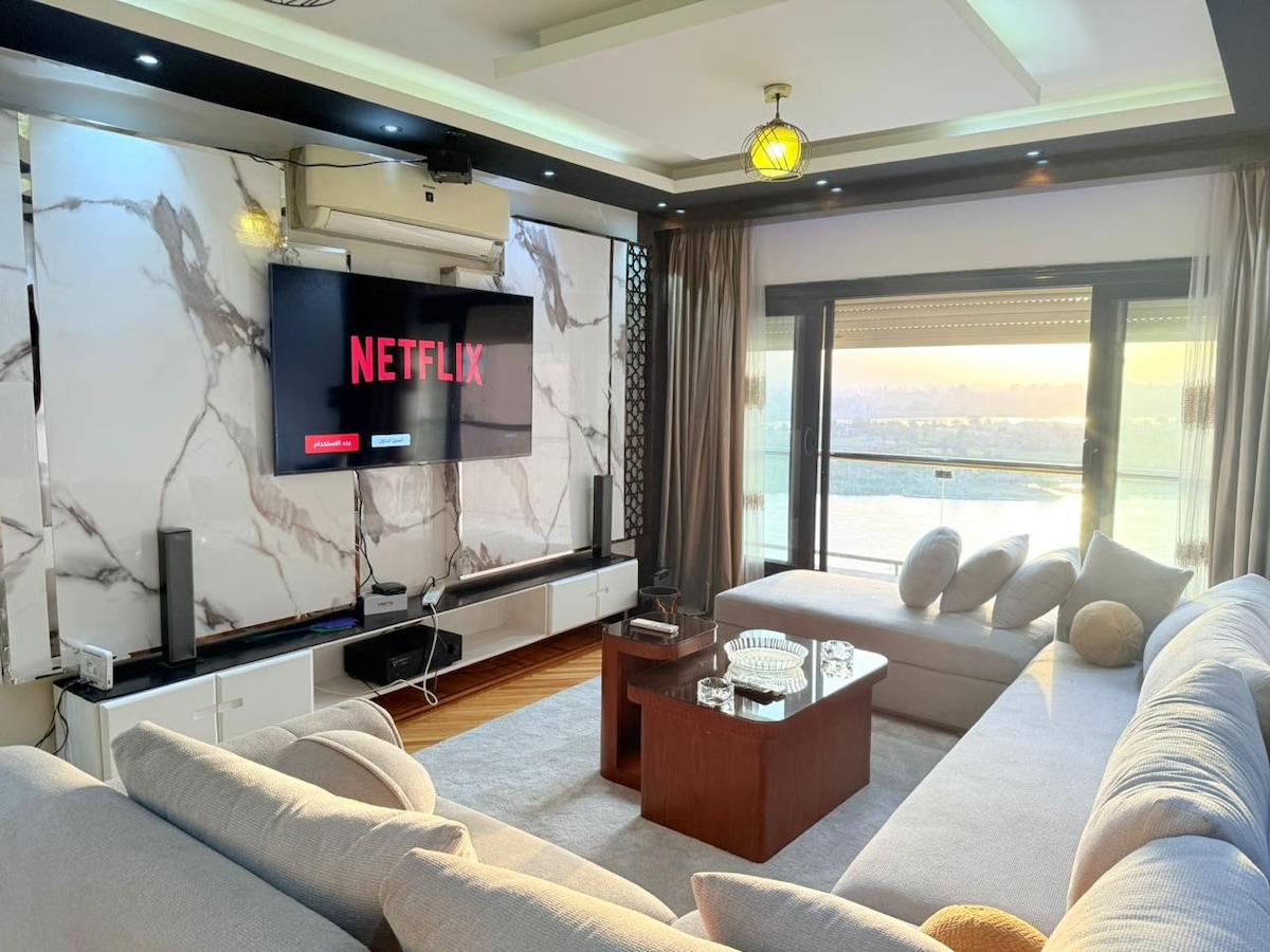 Bine ai venit la liniștea ta Priveliști uimitoare ale Nilului Trezește-te cu priveliști panoramice ale râului Nil, unde răsăritul soarelui pictează cerul în nuanțe vibrante. Bucură-te de cafeaua de dimineață pe balcon în timp ce privești bărcile alunecând * Interioare spațioase și elegante * Apartamentul nostru este conceput cu gândul la confortul tău. Poziție principală #Dotări pentru orice nevoie bucătărie complet utilată sau bucurându-te de o noapte de film cu televizorul nostru inteligent, avem tot ce îți trebuie pentru o ședere confortabilă. Abia așteptăm să te întâmpinăm!
