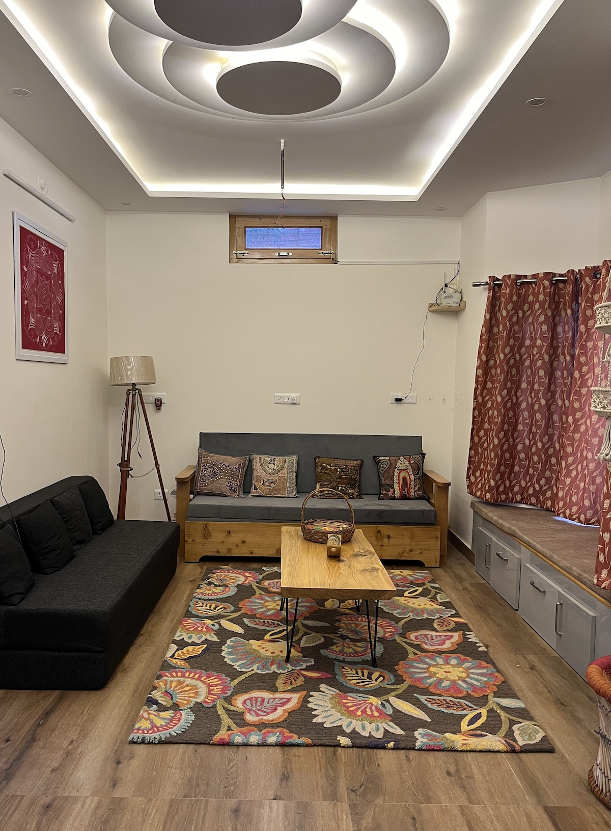 Chandak Bungalow is a spacious hill home set within a private estate amid pristine nature, offering uninterrupted Himalayan and valley views. Located atop Chandak Hill, it is reached via a 10–12 minute uphill walk from the parking area - it ideal for guests who enjoy quiet, nature-led stays and don’t mind a short walk to reach a truly secluded setting with breathtaking views. With oversized windows and open sit-outs, this lived-in home, shaped by the Anuva philosophy of simple, thoughtful living