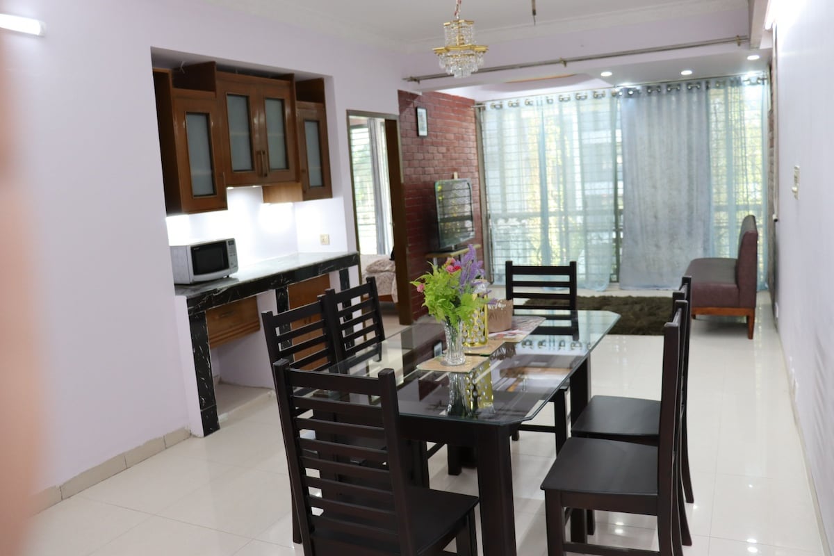 Discover comfort and convenience in this spacious three-bedroom apartment in Dhanmondi, Dhaka, perfect for families or groups. Enjoy three modern bathrooms, a large living room with flat-screen TV, and a well-equipped kitchen with ample space and appliances, including a washing machine. Bedrooms have cozy beds and plenty of natural light. Relax and dine in the stylish open-plan area with city views, elegant décor, and easy access to nearby shops and attractions.