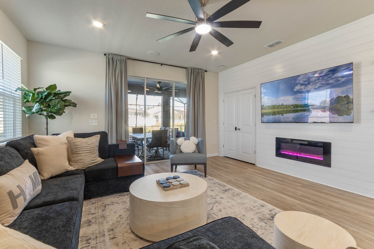 Amazing Brand New Modern Luxurious Home at Encore Resort Reunion. PET-FRIENDLY & Minutes to all Theme Parks. BRAND NEW HOME. Private Pool & Spa / Game Room / Movie Theater / Gym / Massage Chair / Fireplace / PS5 / Board Games & Much More. Embrace the extraordinary and book your stay at our home, where luxury, entertainment come together for an unforgettable vacation experience. ** Please review the rules before booking. Waterpark access is not included. **