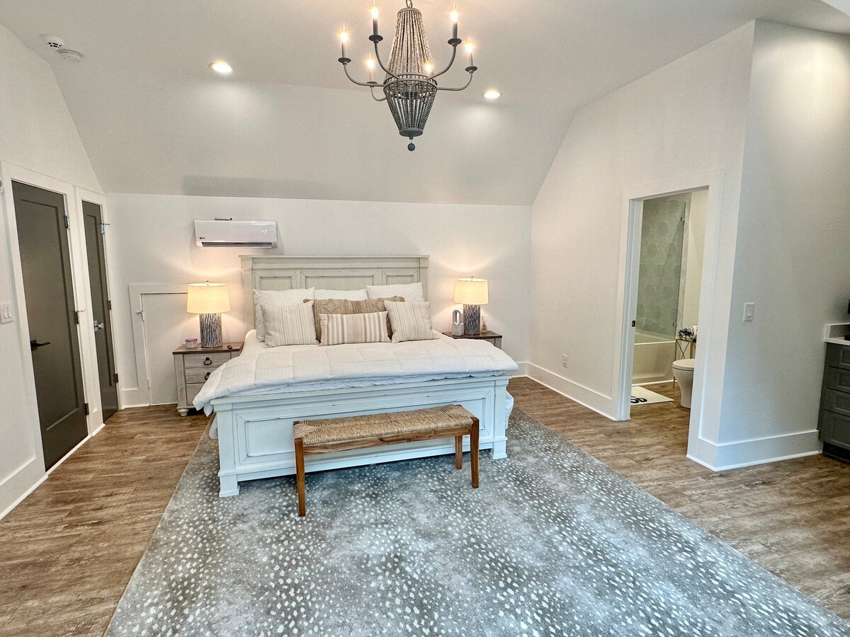 PE MALUL LACULUI, personalizat în 2018. Amplasat în mijlocul copacilor, te vei bucura de casa noastră de oaspeți privată. Inclus: 1 dormitor cu pat matrimonial, baie completă cu duș, cameră mare elegantă cu bucătărie complet utilată. Include, de asemenea, o verandă mare în aer liber cu tavan boltit și luminatoare. Bucură-te de pescuit, înot, caiac și plimbări cu bicicleta de pe docul proprietarului. Restaurante și activități la câteva minute distanță. Taxare VE disponibilă la proprietate. Casa de oaspeți este o structură separată, cu propriul hvac.