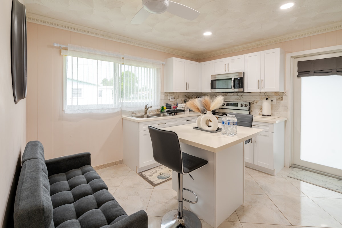 Studio modern, elegant, confortabil, nou-nouț în casă privată, situat central în cartierul Fort Lauderdale, situat pe un lac fermecător. Bucură-te de curtea din spate și de priveliștea minunată a lacului, de piscina mică, de terasa mare, precum și de terasa privată laterală cu zonă de umbră tropicală, O scurtă plimbare până la restaurante, cumpărături, Trader joe, 1,5 mile până la plaja Fort Laud, Wilton Manors și Galleria Mall. Confortabil pentru călătorii de afaceri sau de agrement, cupluri, aventurieri solo și familii. Locul perfect pentru o escapadă.
