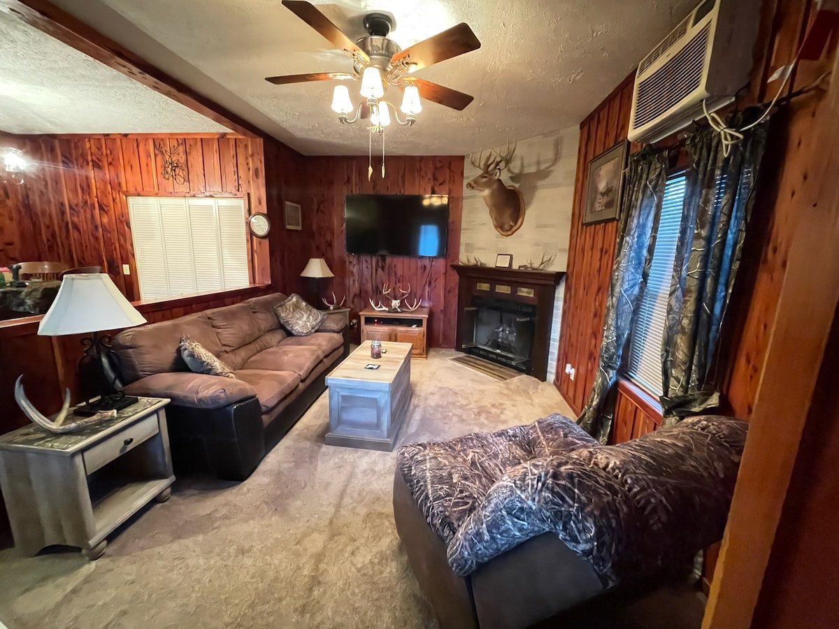 Vino să te bucuri de o ședere în cabană fără să o amendezi! Ne aflăm în inima ținutului de căprioare Whitetail din vestul statului Kentucky. Dispunând de un lac mic și o verandă din față dotată cu leagăn, cabana este situată lângă păduri. Un șemineu cu gaz este pregătit pentru acele seri foarte reci, iar garajul mare atașat este perfect pentru echipamentul de vânătoare și depozitare. Proprietatea este privată, dar aproape de autostradă și la mai puțin de 4 mile de alimente, combustibil și alte produse esențiale. Există o parcare amplă și o groapă de foc!