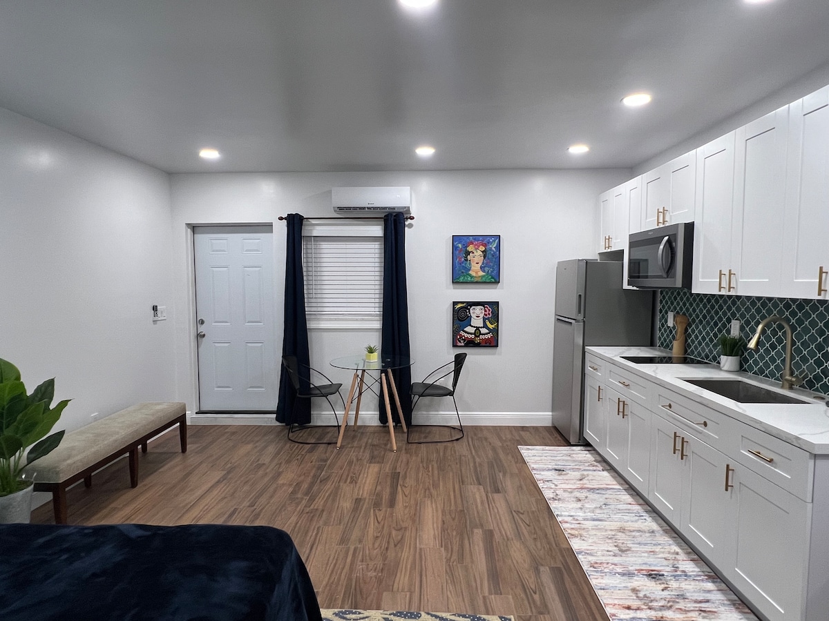 Recent renovat! Acest apartament are acum o baie, o bucătărie mică și o intrare privată. Poate fi folosit pentru vacanțe de muncă sau de familie. Acesta este situat ca o extensie a casei cu acces la casa principală. Camera are televizor de 55”în dormitor și televizor de 65” în living. De asemenea, vei avea acces la restul locuinței, care include masă de biliard, terasă cu grătar și facilități de spălătorie. Ești la 15 minute de mers cu mașina până la ocean. Oferim scaune, umbrelă și răcitor pentru plajă.