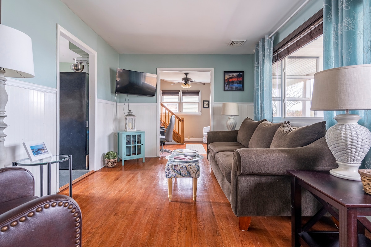 Această casă renovată de pe malul apei, cu 2 dormitoare, are o bucătărie mare, modernă, living și birou confortabile, sistem de încălzire și ventilație nou, șemineu cu lemne și cadă cu hidromasaj. Bună viteză FIOS și Wi-Fi. Chei mare și punte în formă de L, ideală pentru pescuitul de crabi și pește în timpul sezonului. Priveliști uimitoare la malul apei și la apus. Bucură-te de observarea păsărilor, de caiac sau de o baie în cada cu hidromasaj.