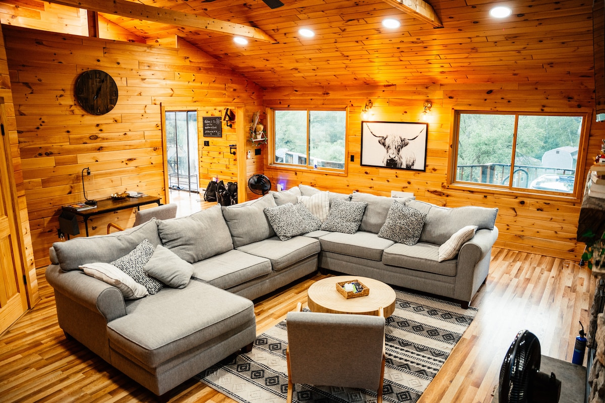 Bucură-te de propriul cinematograf interior privat cu 7,1 Klipsch Premiere Surround Sound și scaune rabatabile din piele, un spa cu o piscină și saună reci și o cadă cu hidromasaj pentru a ajunge la nivelul maxim de relaxare. Joacă un joc de ping-pong, bucură-te de șemineu afară și în interior, împreună cu 5 acri! Printre dotări se numără: - Cadă cu hidromasaj - Baie cu saună și piscină rece - Teatru de 12 persoane cu sunet vizual și surround captivant + fotolii rabatabile - Sală de jocuri - Groapă de foc în aer liber - Hamac și multe altele!