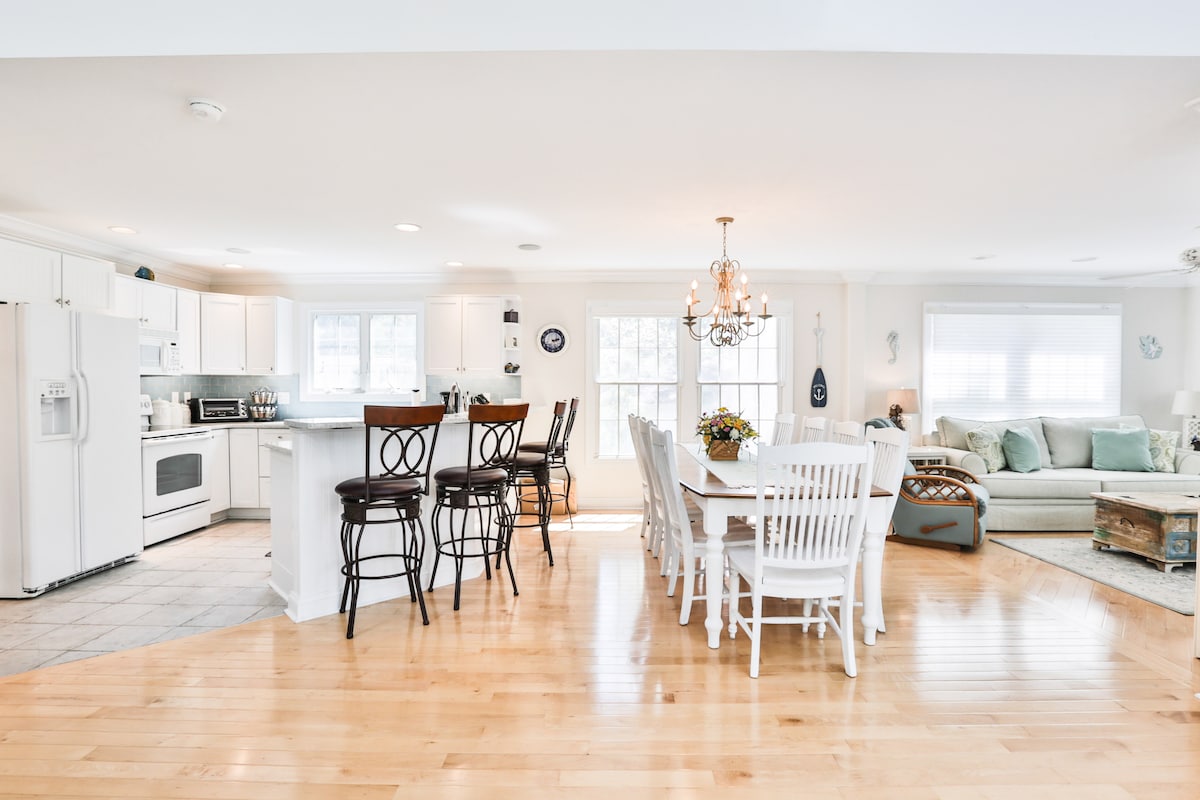 Această locuință renovată pe plajă (cu un încărcător EV) se află pe 3/4 dintr-un acru și este la fel de mult în interior, cât și în aer liber. Acesta are podele din marmură încălzită, încălzitoare de prosoape și oglinzi LED cu dezghețuri încorporate în băi. Bucătăria are blaturi din granit și aparate din oțel inoxidabil. Există 5 spații distincte în aer liber pentru a se potrivi cu starea de spirit sau cu ocazia. Pentru pasionații de sporturi nautice, este suficient spațiu pentru a-ți lansa caiacul, un sailer de o zi sau chiar un catamaran.