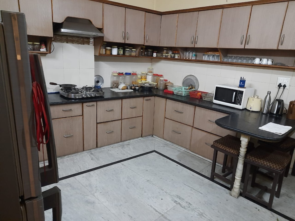 Our apartment in upmarket Greater Kailash is spacious, airy and full of natural light, with independent entry. Perfect for research scholars, writers and anyone needing peace and tranquility. The grocery stores are walking distance. We are a fifteen minute walk from the nearest metro station at Kailash Colony and several hospitals and clinics are a short walk. Popular South Delhi markets with shops, restaurants and coffee shops, Hauz Khas, Khan market, Saket are just a 10-20 minute drive away.