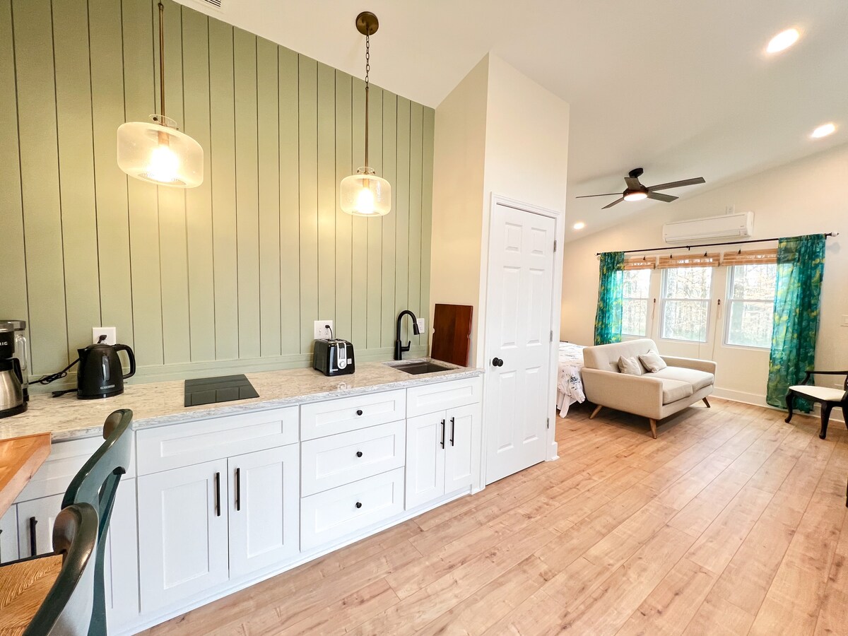 Oază de fermă urbană! Relaxează-te în spațiul exterior mare, privat, cu canapea, masă, jocuri și hamac. Această căsuță este spațioasă, privată și oferă o mulțime de oportunități de divertisment. Situată privat în spatele casei mele. Nu e nevoie să conduci! Plimbare scurtă până la restaurante și divertisment în centrul orașului Hapeville, inclusiv un teatru local, cafenele, sediul Porsche, o fabrică de bere, parcuri, restaurante, baruri, magazin de alimente sănătoase, yoga. Zece minute de mers cu mașina până în centrul orașului Atlanta și 5 minute de mers cu mașina până la aeroport.