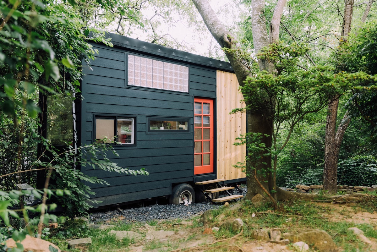 Bine ai venit la Harris Hideaway! Ascuns privat în copacii din Atlanta. Veți găsi această casă mică perfect lustruită la doar 8 km de Aeroportul Hartsfield Jackson și la câteva minute de stadionul Mercedes Benz. Vei admira priveliștea de 360° a copacilor prin ferestrele supradimensionate. De asemenea, bucură-te de cearșafuri proaspete pe patul tău de dimensiuni normale și de jaluzelele de zebră pentru intimitate maximă. Duș mare, chicinetă, pat confortabil - această casă mică le are pe toate. Bucură-te de șederea în ascunzătoarea noastră.