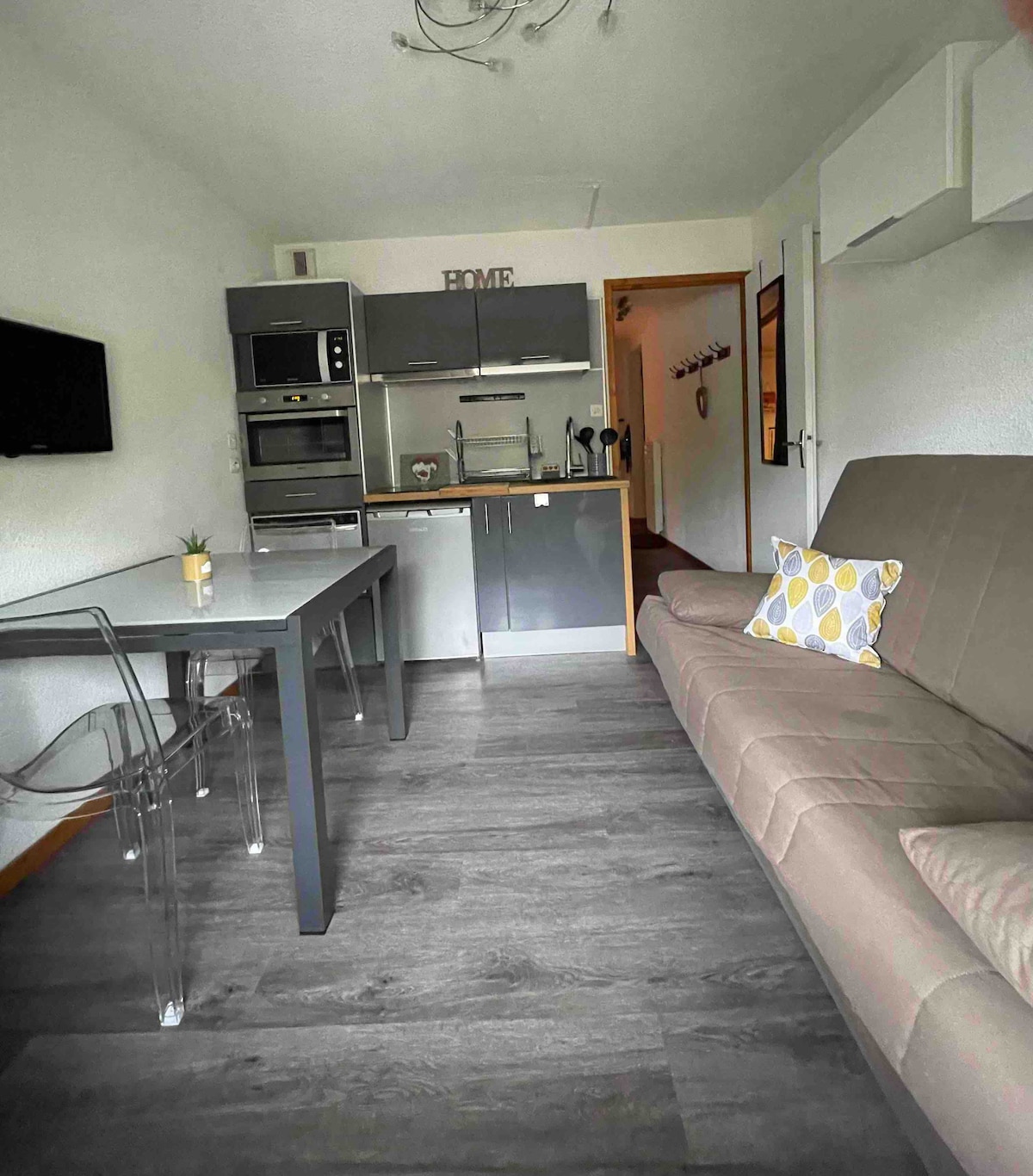 Studio entièrement rénové fin 2021/début 2022, ambiance cosy. Avec vue magnifique sur la chaîne des Aravis et sur les pistes de Skis du Crêt du Merle. Secteur village, au calme tout en étant à proximité des commerces. Vous pourrez admirer cette belle vue depuis le balcon exposé sud, ce studio de 20m2 peut accueillir 3 personnes. Studio très bien équipé et fonctionnel.
